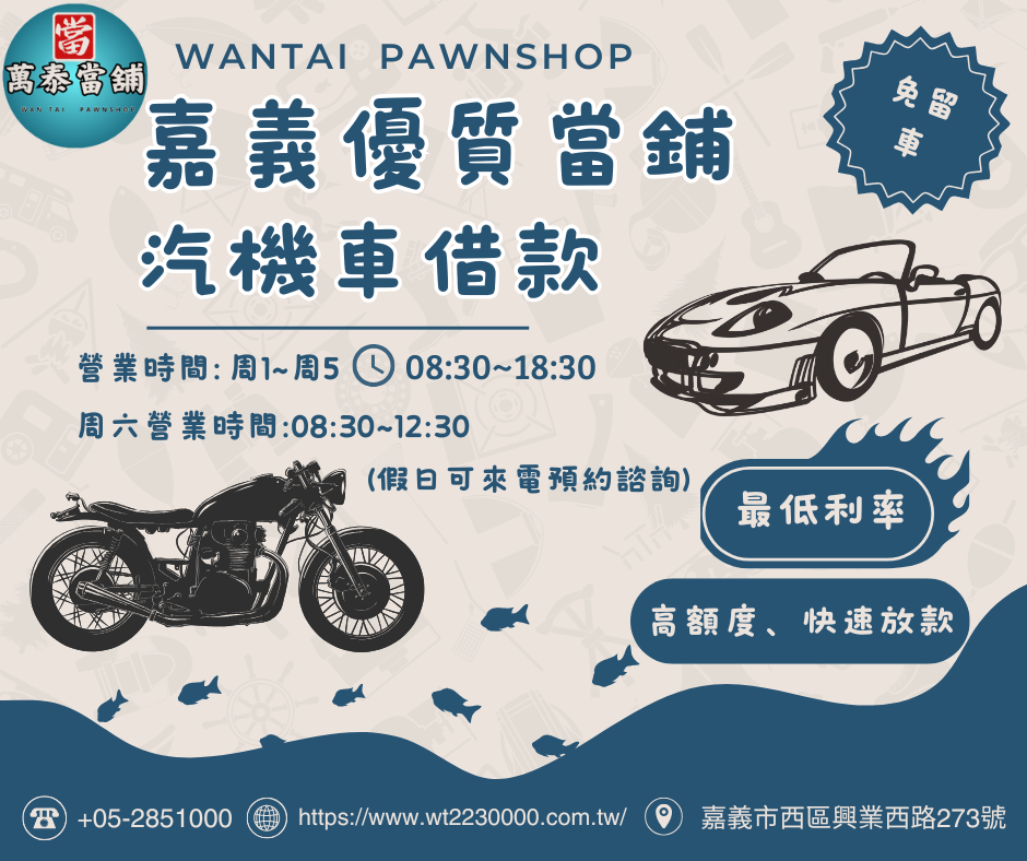 《大嘉義優質當舖嘉義東西區萬泰當鋪汽機車借款》嘉義借款、嘉義當鋪、資金周轉、汽機車借款、黃金借款