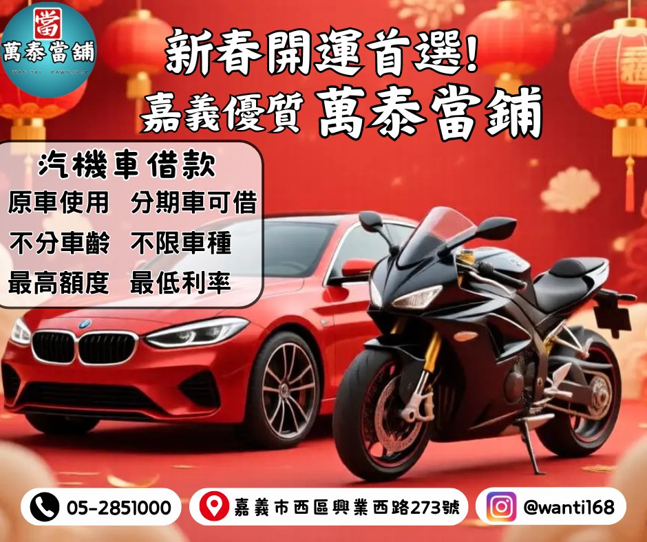 《大嘉義優質當舖嘉義六腳萬泰當鋪汽機車借款》嘉義借款、嘉義當鋪、資金周轉、汽機車借款、黃金典當