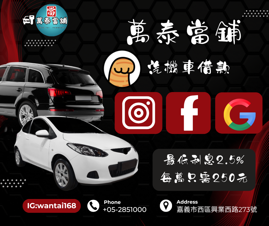 《大嘉義優質當舖嘉義水上萬泰當鋪汽機車借款》嘉義借款、嘉義當鋪、資金周轉、汽機車借款、黃金典當