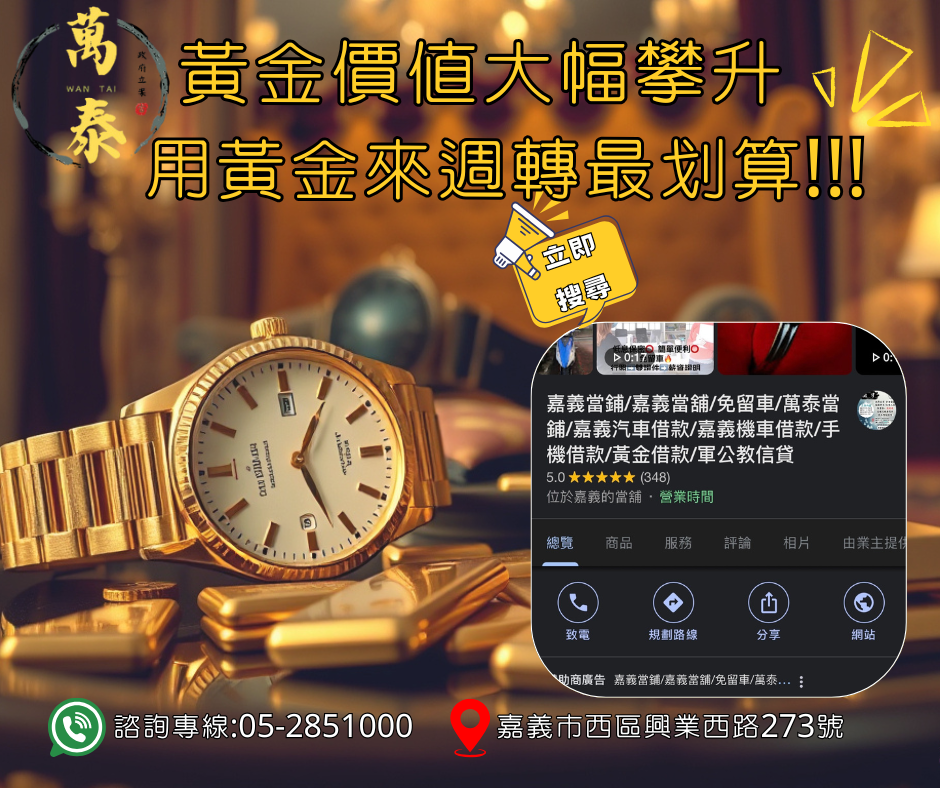 現在來【萬泰當舖】,黃金、名錶都能借!